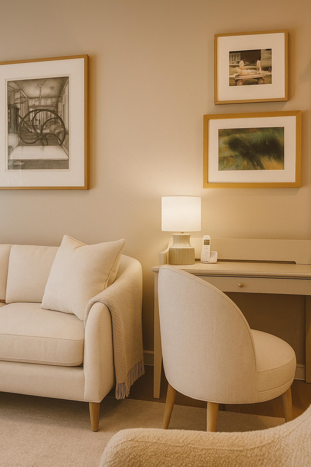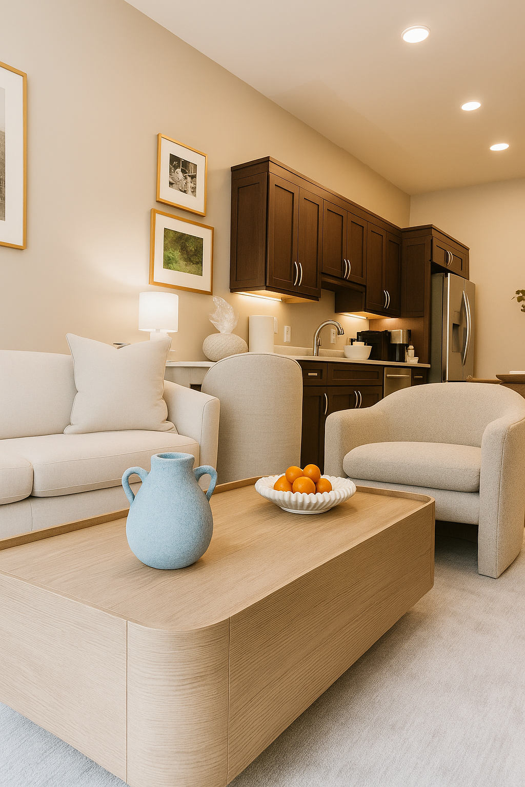 By the time they arrived, the apartment was completely set up—furniture delivered and arranged, TVs mounted and connected, closets and cupboards stocked with everything from dishes to fresh linens, and the refrigerator filled with essentials. I added a few final touches like beach-inspired fragrance and thoughtfully placed artwork to help it truly feel like home.